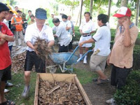 Here come the day(06.04.2008) choosen by the Chairman of Taman Li Hua, Sibu, Mr. Tiong Tung Uh for a demo of the garden waste composting at the garden itself. More than 50 local residents of Taman Li Hua came for the basic composting talk and they actually witnessed the demonstration on setting up a wooden composting chamber in the garden.